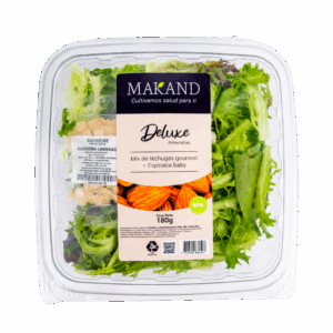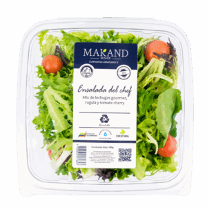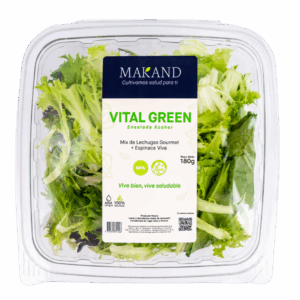 La Ensalada Vital Green Makand Kosher es un snack saludable y ligero, elaborado con una selección fresca de mix de lechugas gourmet, espinaca viva y tomate cherry.